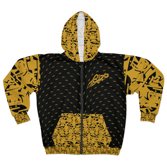 MAJBWR - Street King Black & Gold Zip Hoodie — AOP Whos Watching