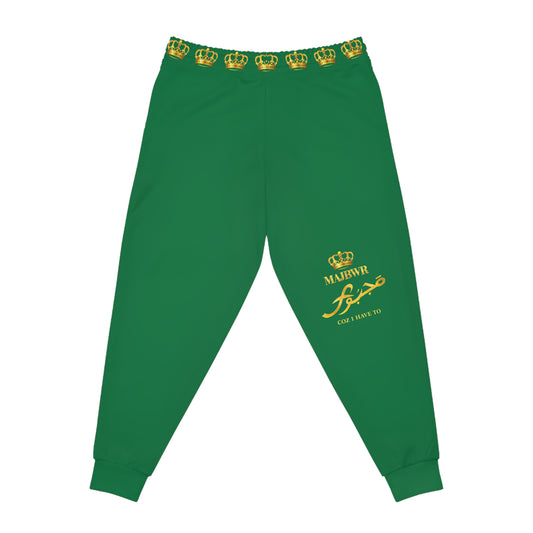 Royal Script Athletic Joggers — Green & Gold AOP
