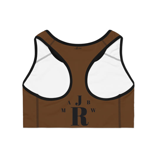 MAJBWR - Dark Brown Athletic Sports Bra — ‘Majbwr’ Script Logo Performance Crop Top