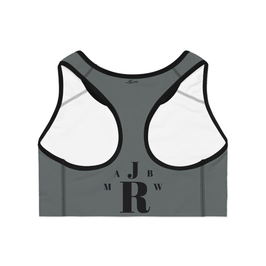 MAJBWR - Dark Grey Athletic Sports Bra — ‘Majbwr’ Script Logo Performance Crop Top