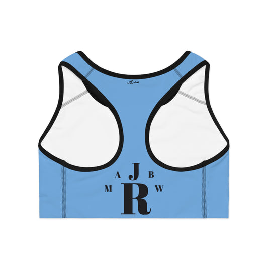 MAJBWR - Baby Blue Athletic Sports Bra — ‘Majbwr’ Script Logo Performance Crop Top
