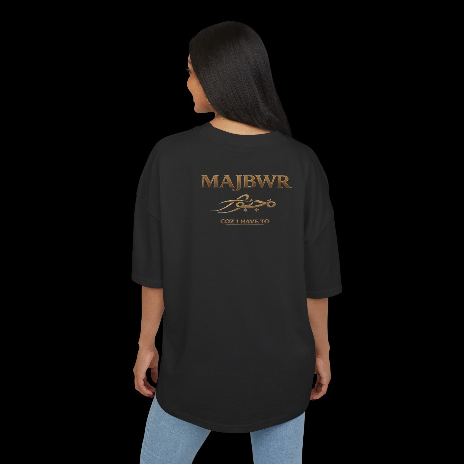 Gold & Black Oversize Box Tee — MAJBWR Graphic T-Shirt