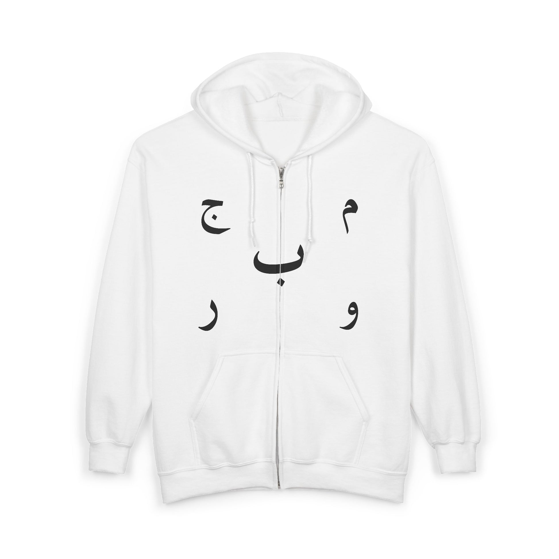 MAJBWR - Arabic Letters Minimal Zip Hoodie — Arabic Alphabet Calligraphy Sweatshirt