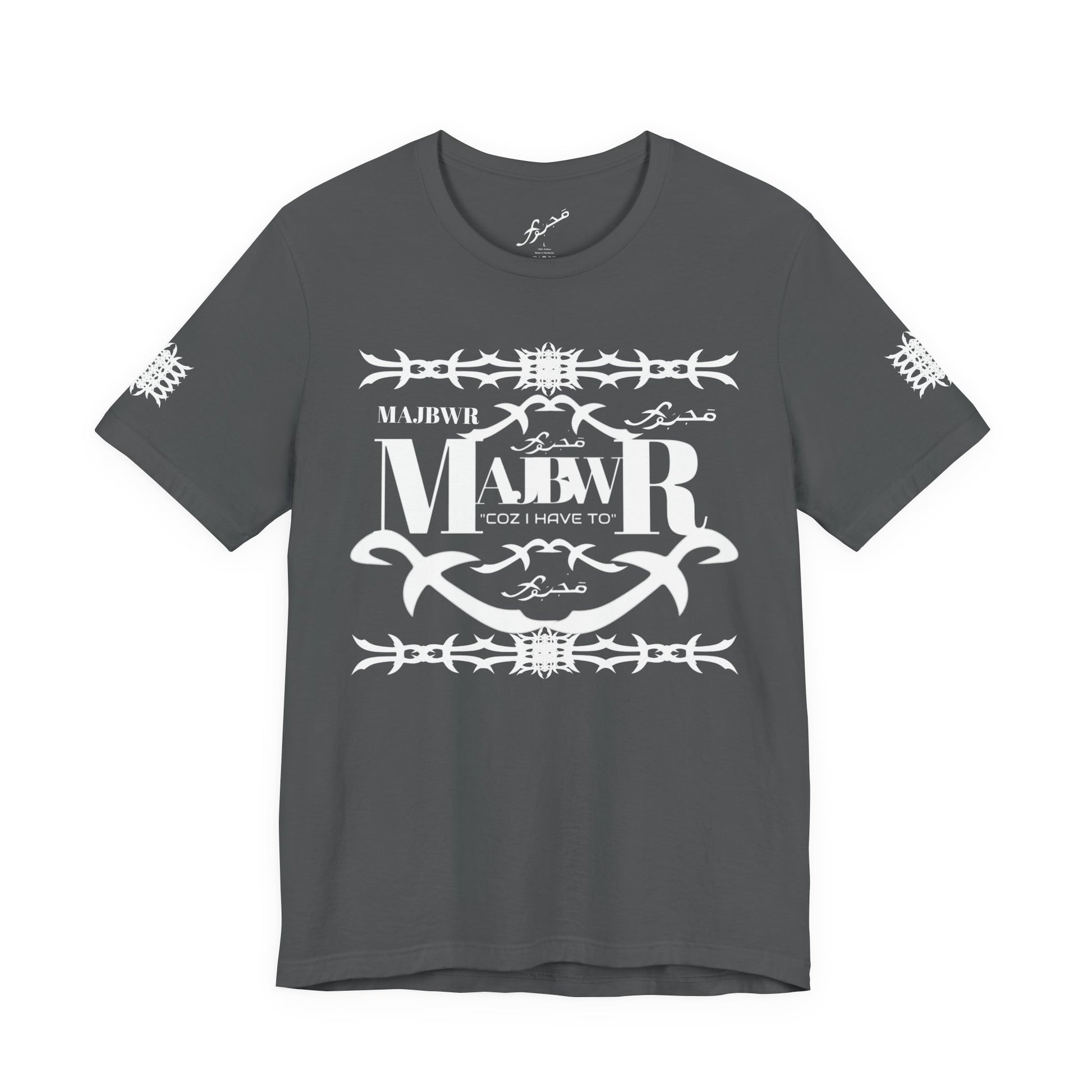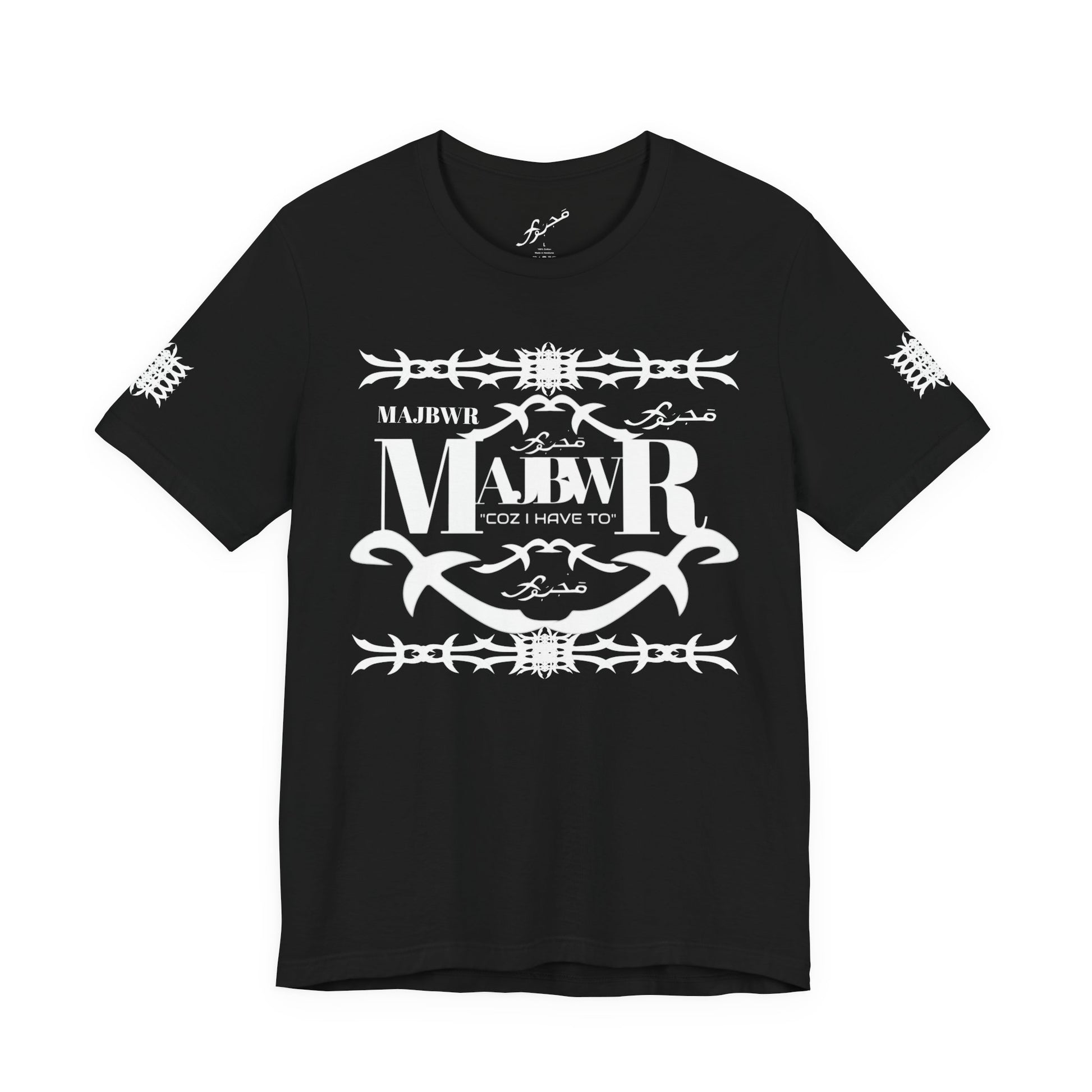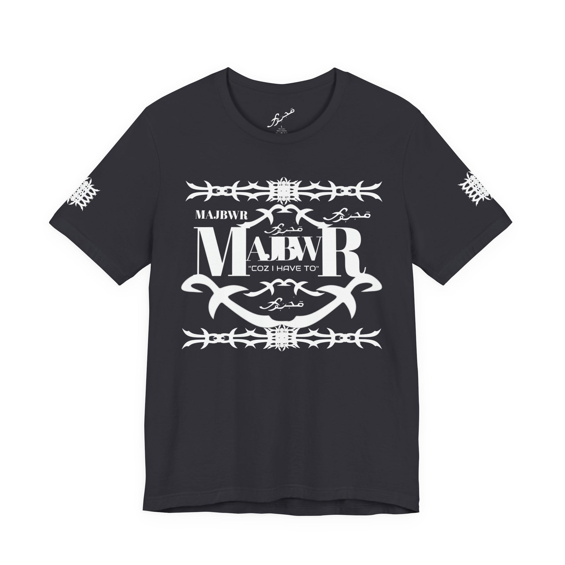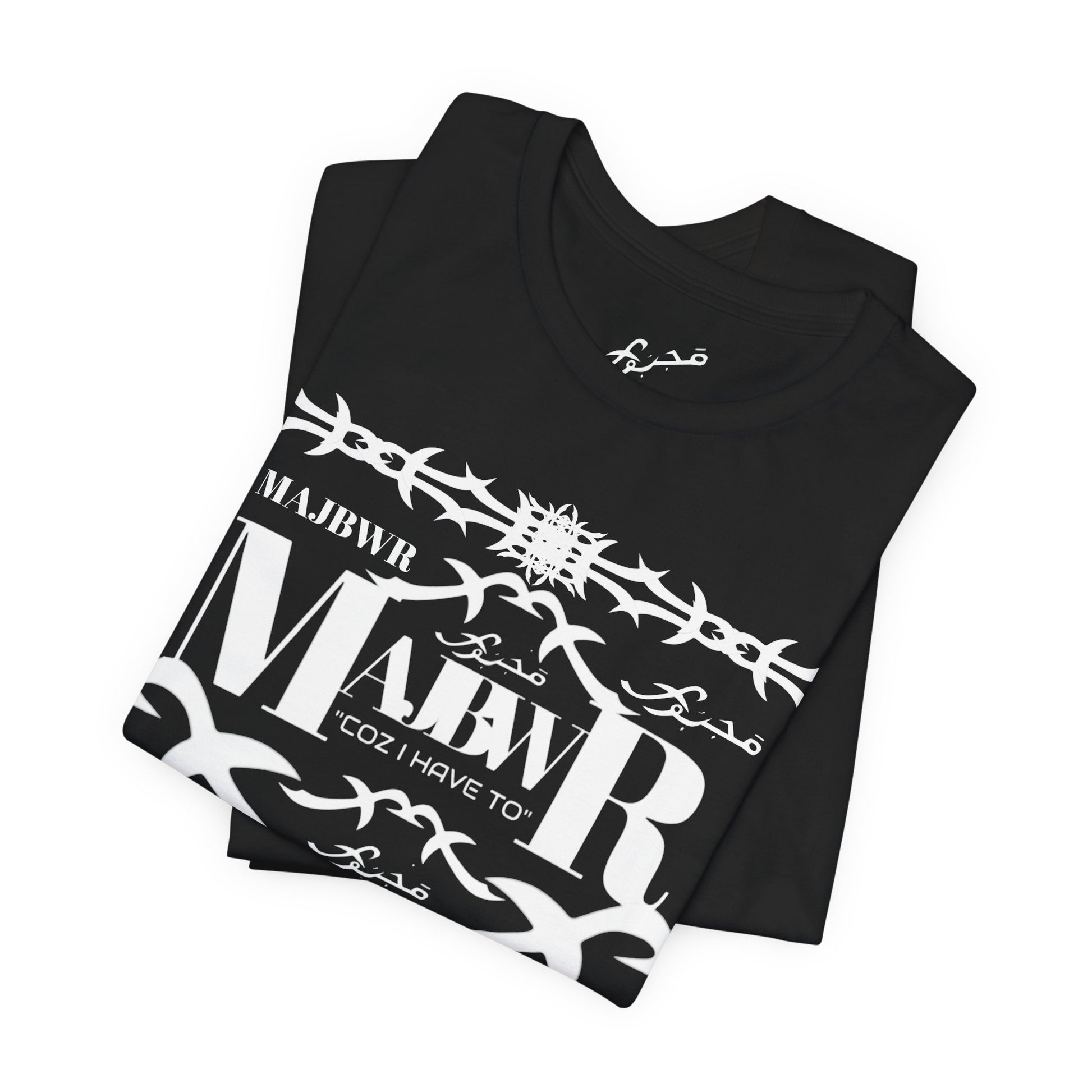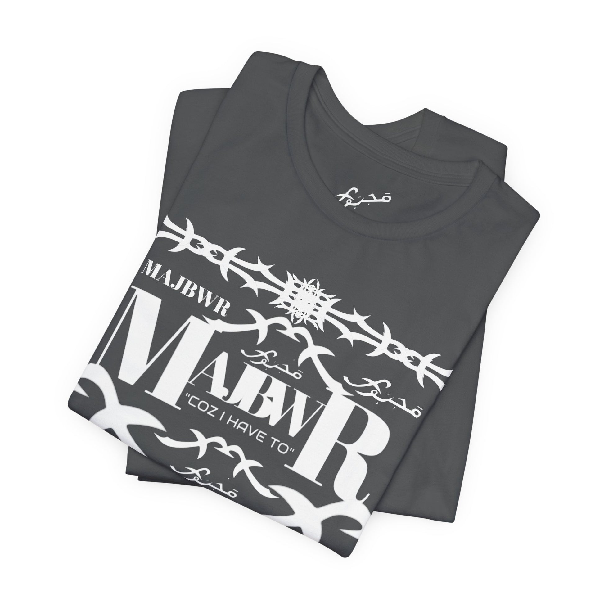 MAJBWR - Arabic Script Barbed Wire Tee — 'مجبور' Graphic T‑Shirt
