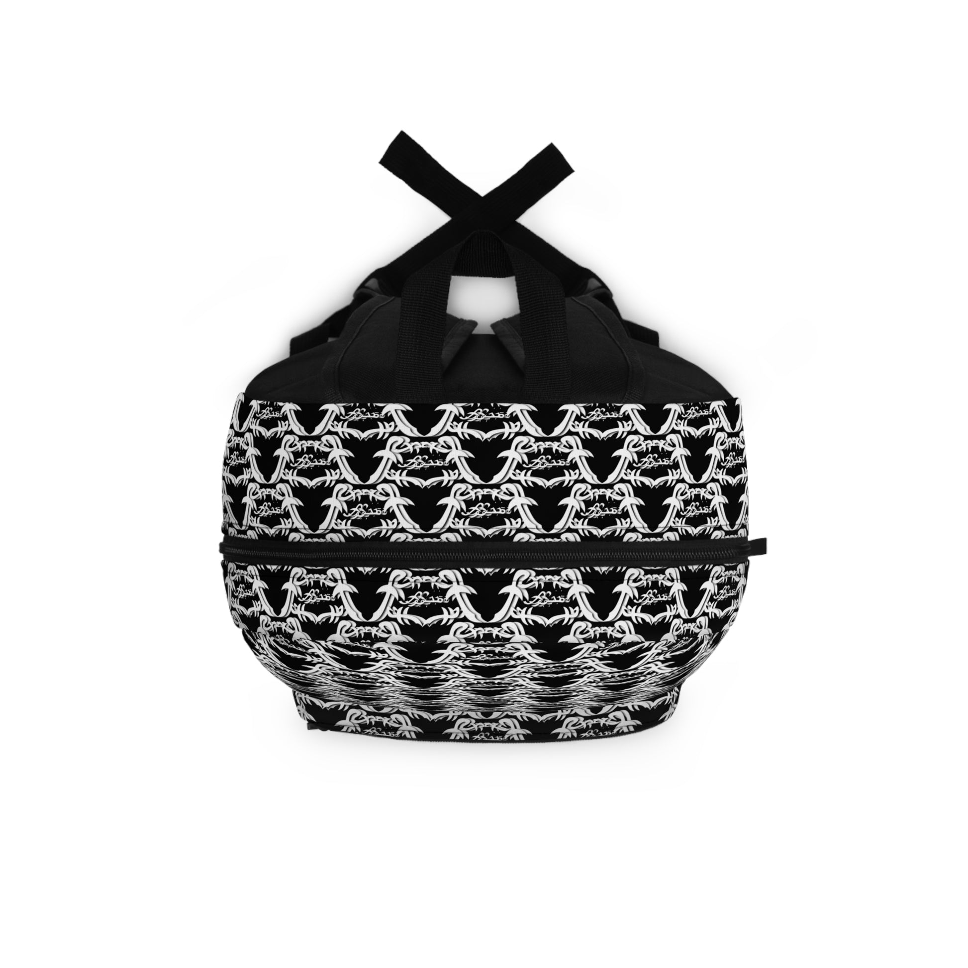 A compact, patterned backpack that moves with you from streets to studio. The monochrome woven design has a hand-crafted feel — a rhythm of repeating shapes that reads modern and quietly bold. Light enough for everyday carry yet built to last, it slips a laptop into the inner sleeve, holds a water bottle at the side, and keeps small essentials organized in the front pocket. Padded mesh on the back and adjustable straps make longer commutes more comfortable. This backpack is for people who prize texture and utility: it carries work, tools, and ordinary adventures without fuss, while the subtle graphic gives whatever you pack a little extra edge.