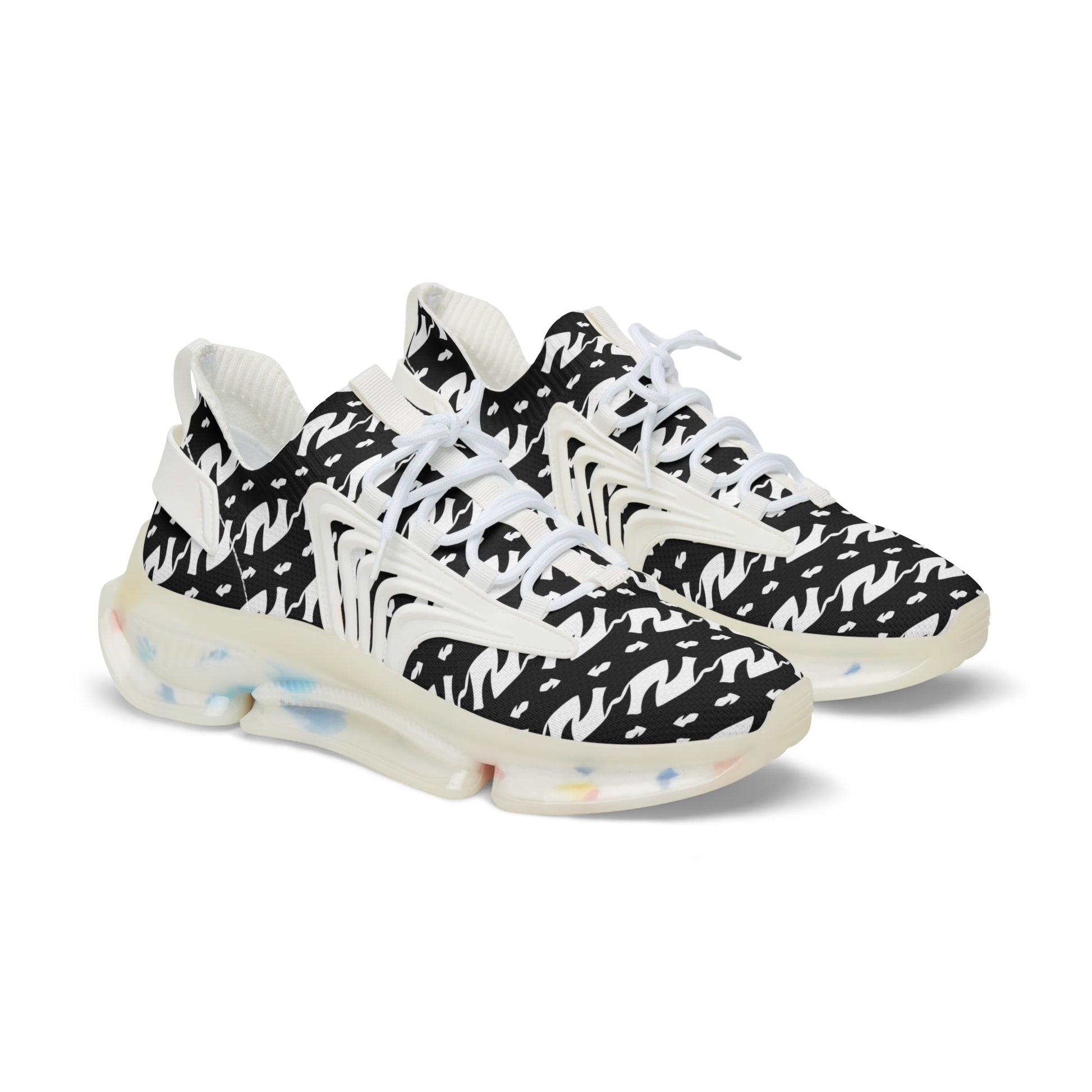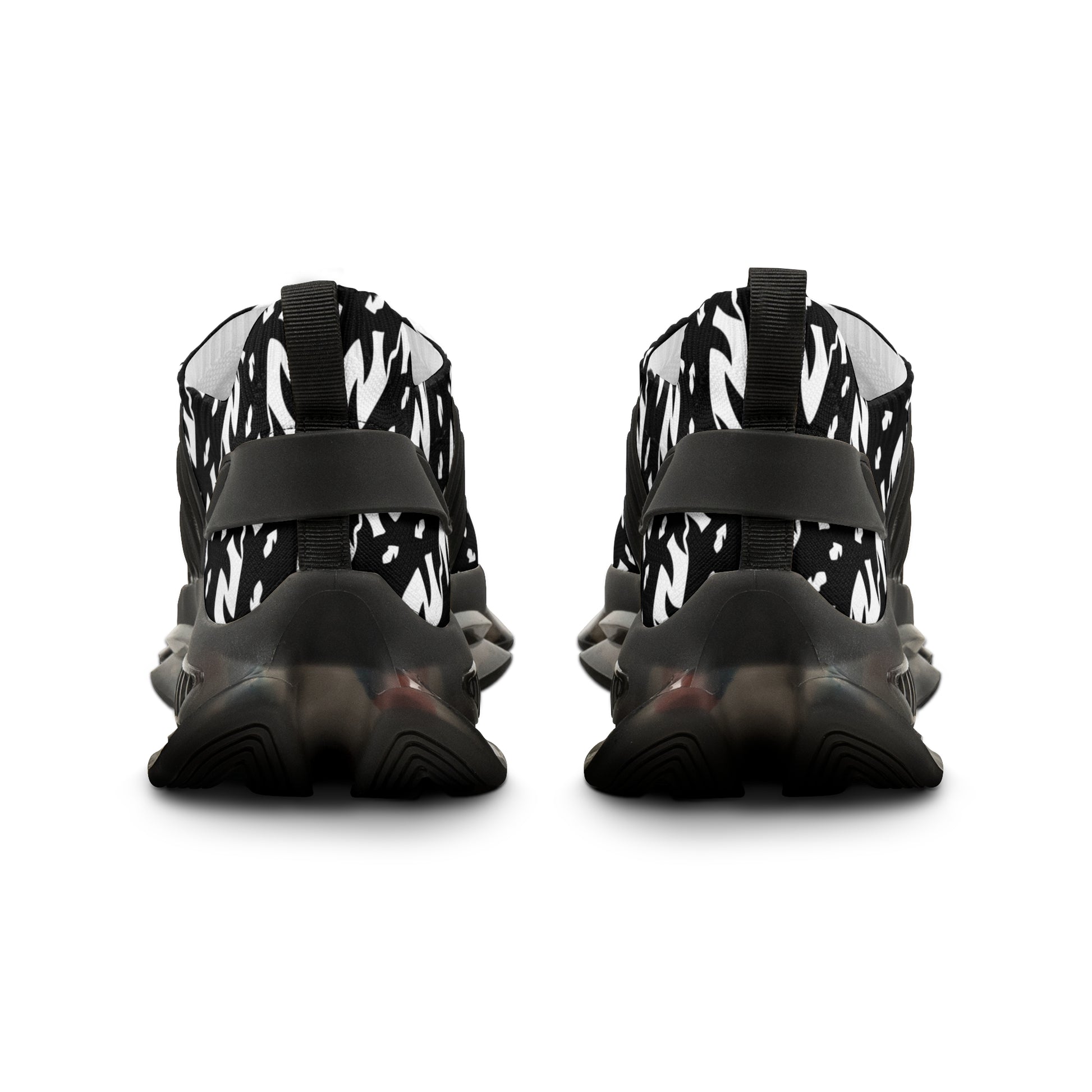 These mesh sneakers bring street-ready attitude with lightweight comfort. The breathable knit upper is wrapped in an all-over monochrome print that reads like modern graffiti — bold, chaotic, and confident. A cushioned EVA sole with visible TPU/EVA shock layer keeps steps springy, while the deodorant memory foam insole breathes and molds to your foot for long days on the move. KPU overlays add weather-resistant structure at stress points, and a secure lace-up closure keeps the silhouette snug. Choose black or white detailing to match your wardrobe; contrast stitching aligns with the sole color for a finished look. They wear like sneakers built for urban exploration, late-night runs, and days when style matters as much as stride.