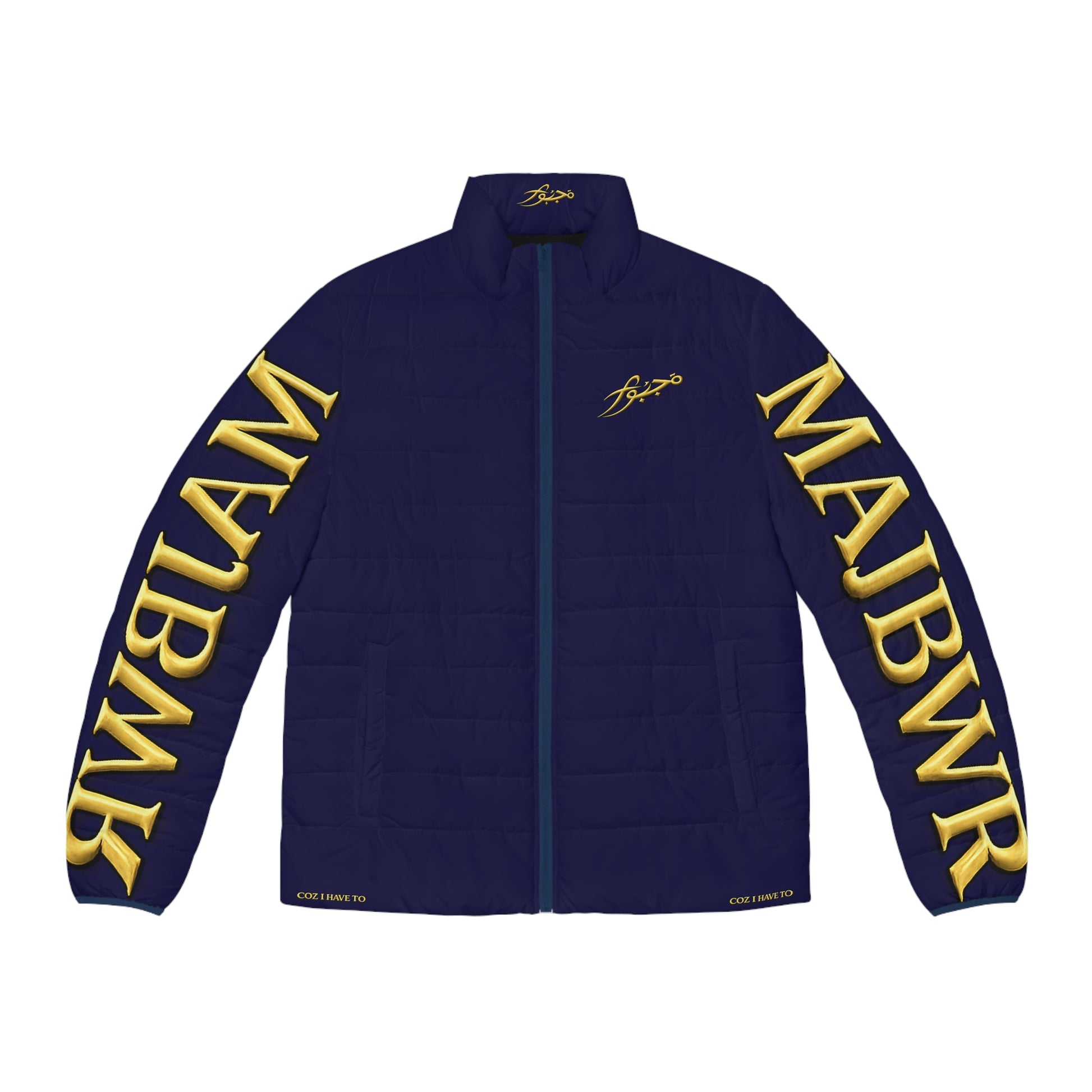 MAJBWR -Deep Purple Gold Script Puffer Jacket — "By Choice Not Force" Insulated Jacket Limited Edition
