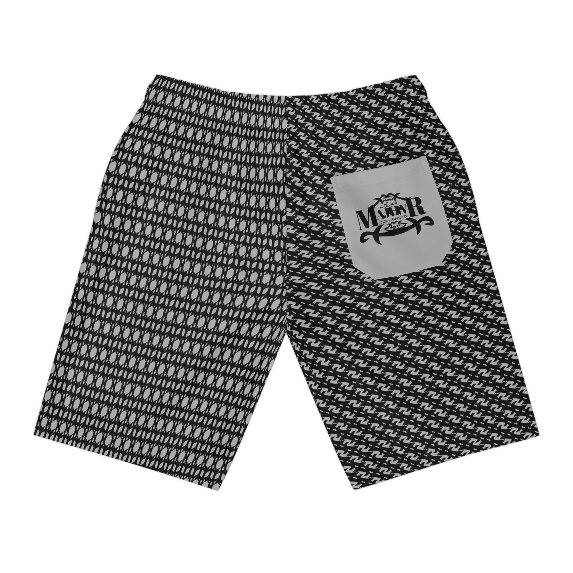 These athletic long shorts bring bold, street-ready style to your training and downtime. The black-and-white motif uses oversized, interlocking shapes and sharp, tattoo-like marks to give the shorts an edgy, urban attitude. Cut for movement, they sit mid-thigh with an elastic waistband and white drawstring so you can tune the fit on the go. Breathable, moisture-wicking fabric keeps you dry through workouts, runs, or long days out. Subtle, printed logos and a small pocket detail add character without getting in the way of function. Wear them for intense training sessions, skate-parks, or when you want a confident, graphic look for city wandering.