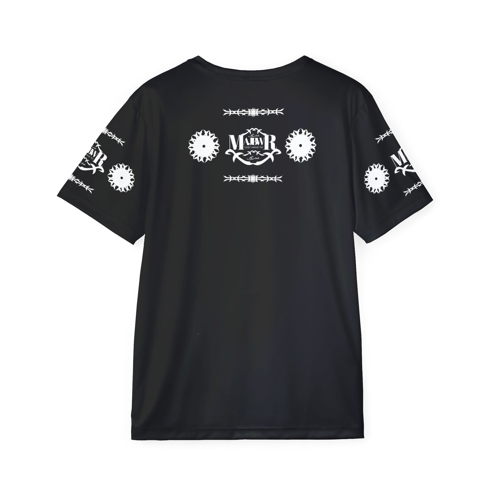 MAJBWR - Men's Black Athletic Jersey with White Crest & Gear Motif