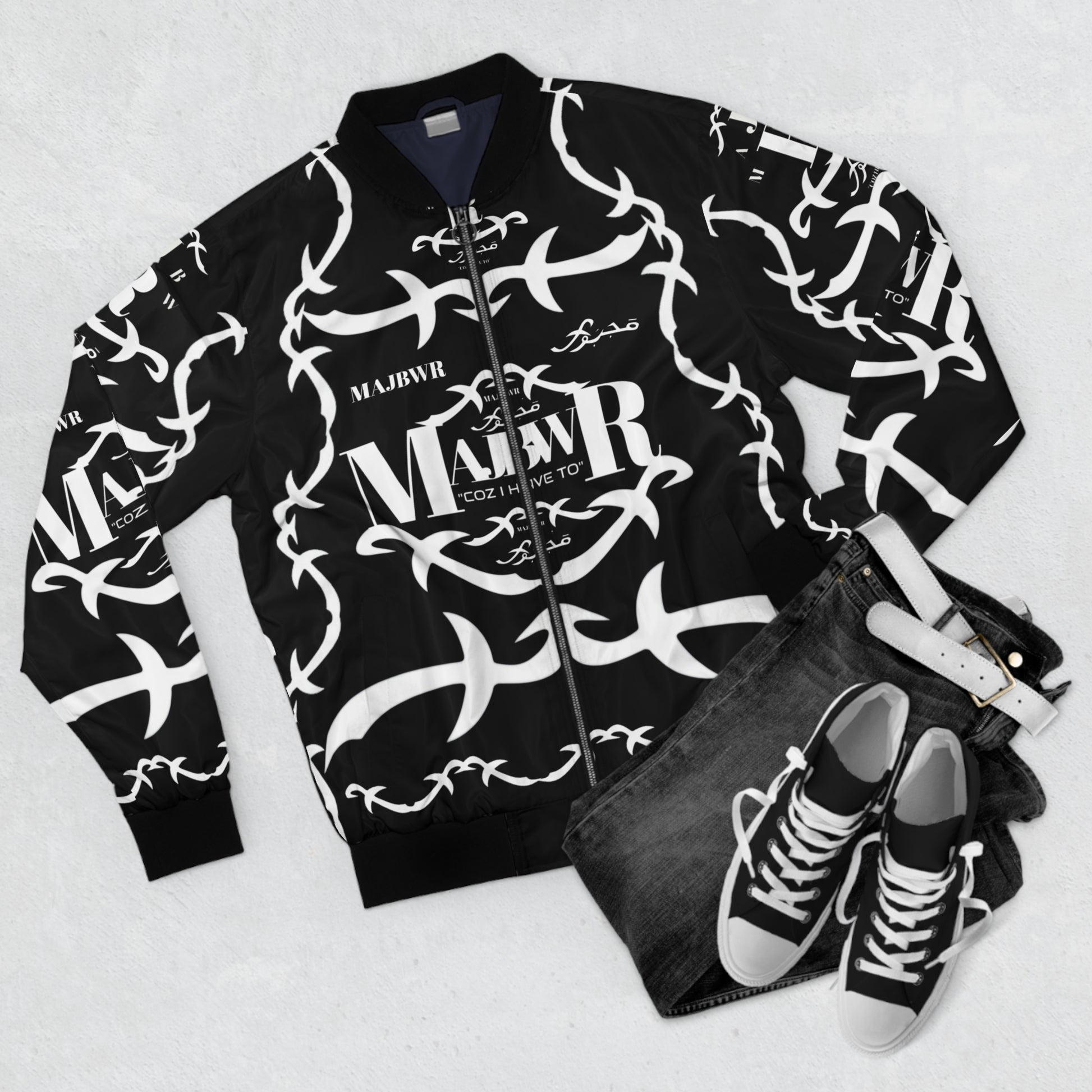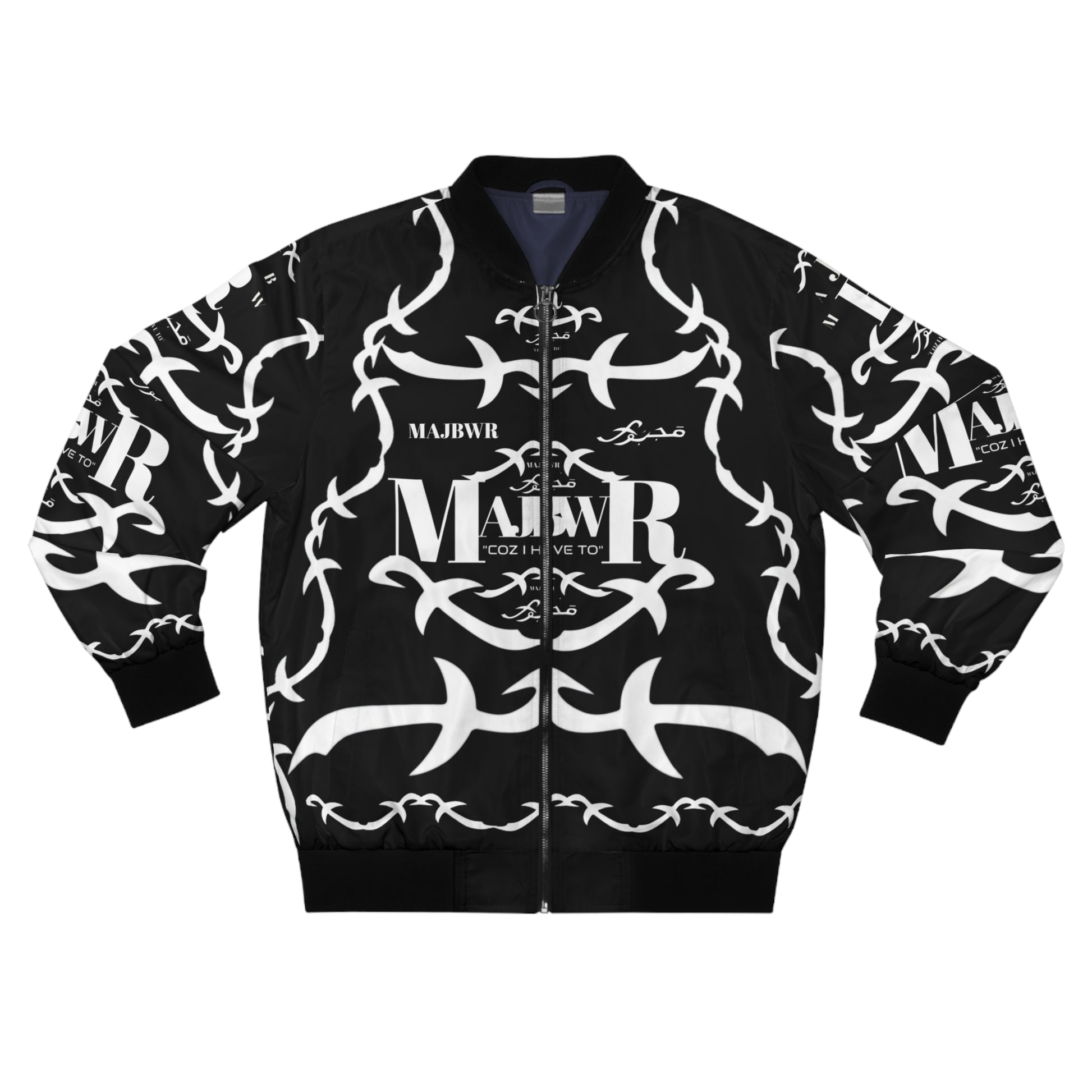 MAJBWR - Men's Black Barbed Wire Bomber Jacket – 'MALWR' Graphic Streetwear