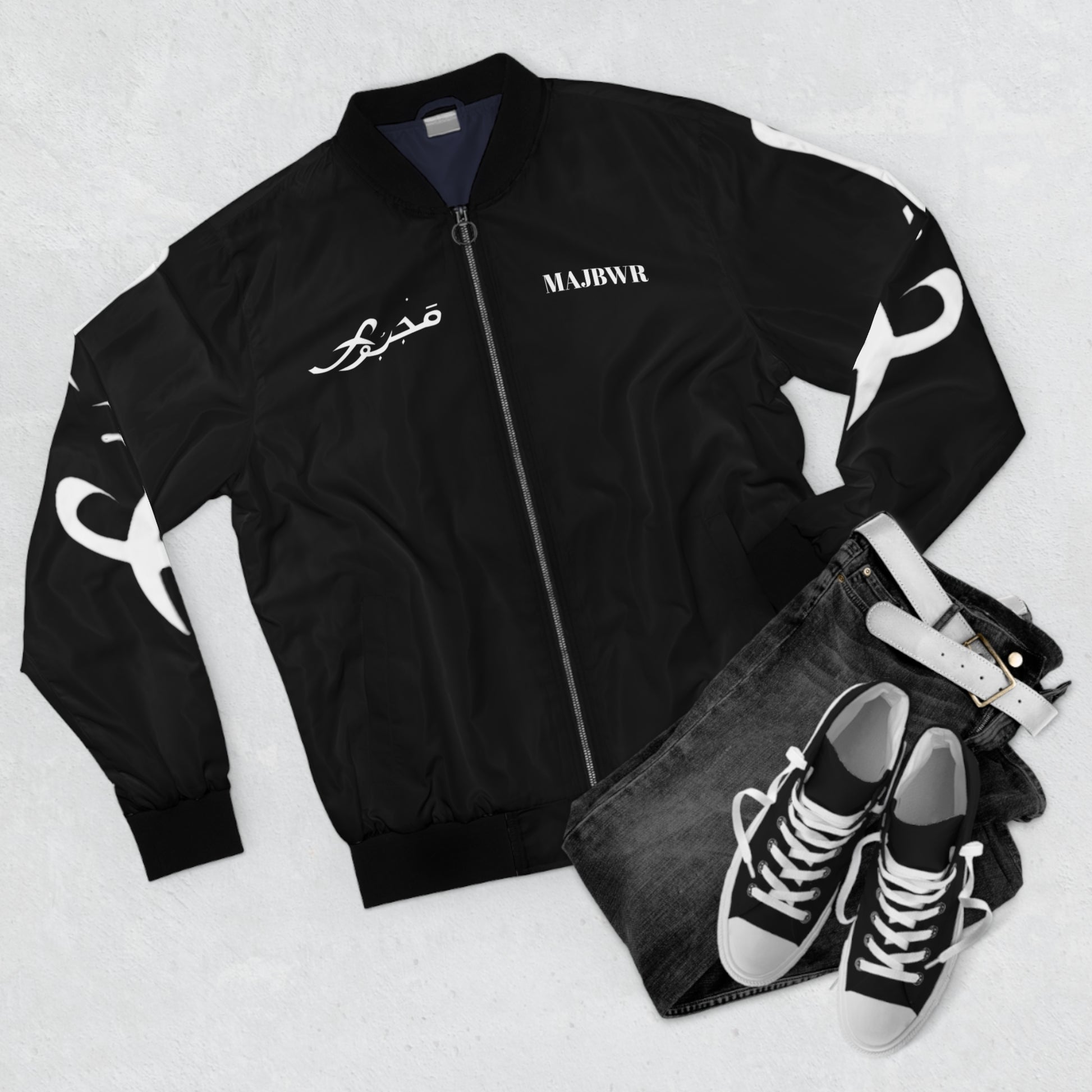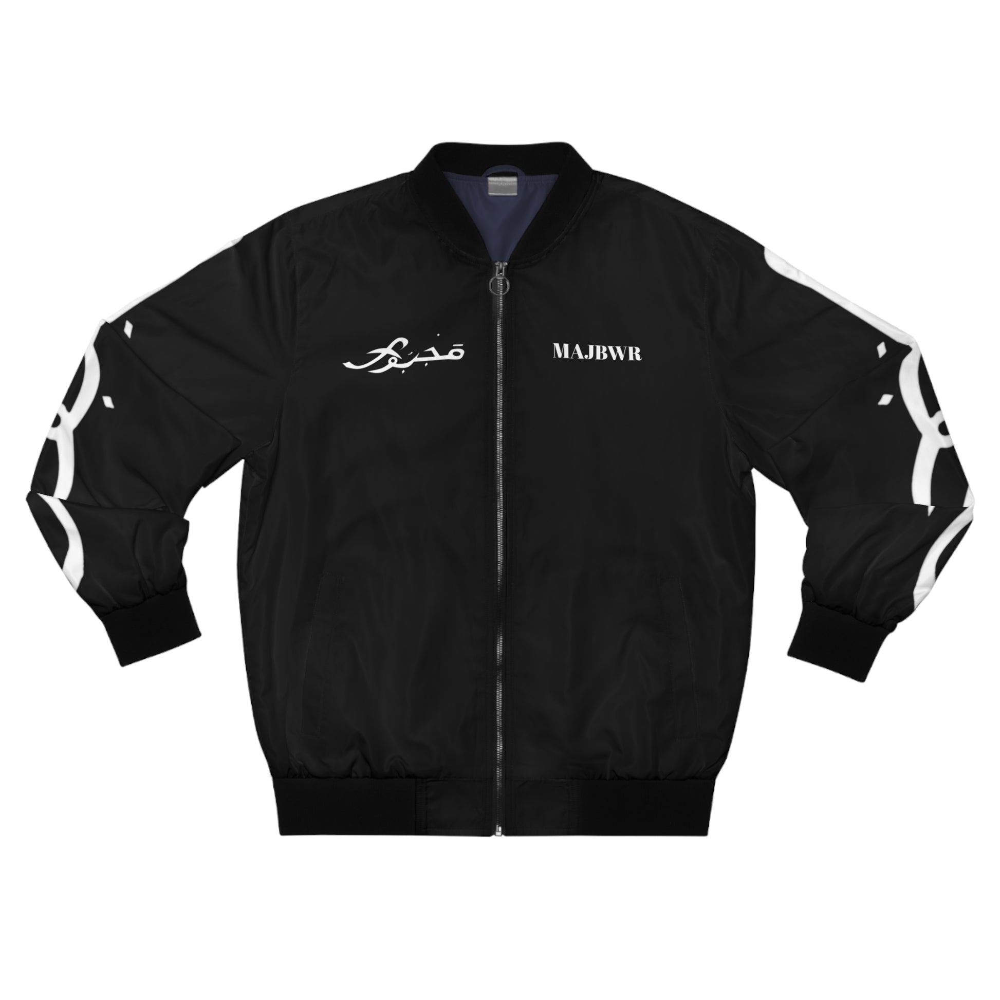 MAJBWR - Men's Bomber Jacket BLACK with Graphic Design, Trendy Outerwear, Street Style Jacket