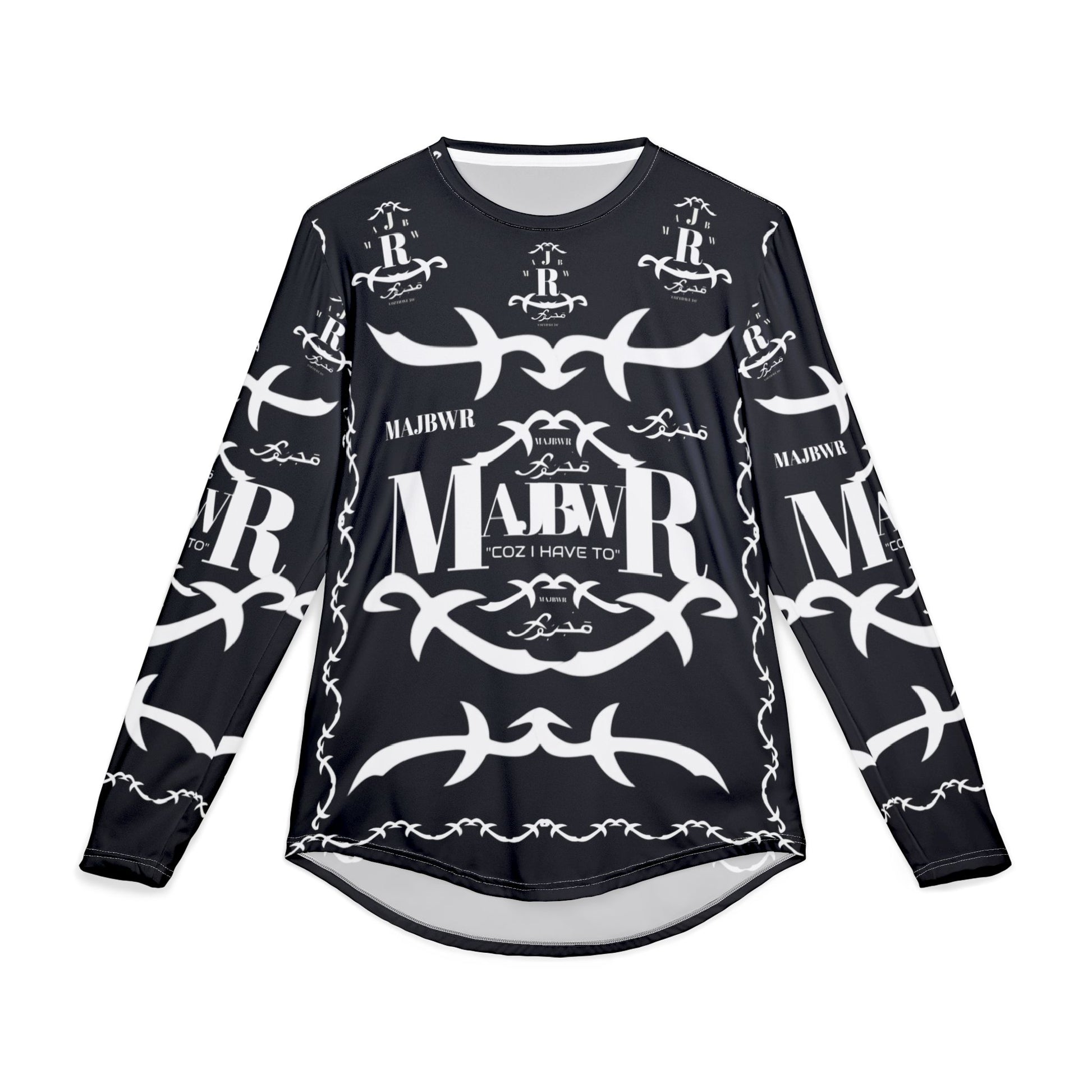 MAJBWR - Men's UV Long Sleeve Shirt — Black Arabic Calligraphy All-Over Print